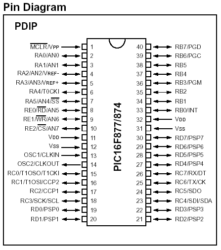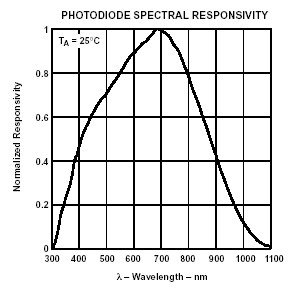 This is the spectral response curve indicating that the array has peak sensitivity to the red wavelength of 700 nanometers (700nM). The wavelength emitted by the blue LED is 470nM. The blue filter selected to protect the sensor from stray ambient light passes more light from the 470nM wavelength, while blocking other wavelengths of light present in the visible spectrum. This double protection eliminates the effects of stray ambient light, which could trigger a false response from the Linear Array due its stronger sensitivity to red light. The processor chosen to control this sensor is the PIC16F877. It has many Input and Output ports (I/Os), internal timers and clocks, several permanent data storage locations (EEPROM), can be quickly erased and reprogrammed during development and in the field (flash memory) and several other features which led to this selection.