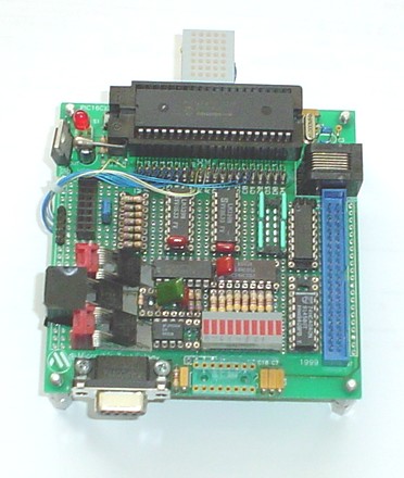 Once some initial light source, metal sample and optical sensor interactions were documented, the electronic signal processing circuitry was designed. This hardware-only approach was quickly defeated, as more complex signal signatures were observed which could not be accurately monitored without microprocessor and software management. A PIC controller was selected for its numerous I/O ports and flash reprogrammability. It also featured an onboard Analog to Digital (A/D) converter and a Comparator. The A/D converter however requires far more time to acquire and convert a data sample than is available for real time processing. A hardware "flash A/D" was developed using a resistor ladder and a comparator tree. The onboard comparator and A/D converter are left unused as a result. V Software DevelopmentInitially the center hump of the signal arising from the clear band was measured dynamically but when contamination was present the new servo would boost the signal back up to a passing level and no errors were detected. Assembly language was used to meet the demand for optimum timing efficiency by the real time data capture, analysis and response performance necessary. As the code became more complex it was broken down into modules. This preserved the integrity of fully developed modules while more advanced system level refinements progressed. A bit by bit sampling scheme was carried forward into a static measurement scheme. This method did work until it was discovered that the first 128 pixels of a given Linear Array do not have the same sensitivity to light as the second 128 pixels. The final development in measuring the center values was to average out the entire series of samples. A servo circuit accommodates a range of metal reflectivity, LED output intensities and Linear Array sensitivities. A key component in the loop is a digital potentiometer. Changes in the design specifications called for the unit to have a user initiated auto calibration function. This prompted the development of software to utilize the EEPROM onboard the PIC. Registers were set aside for calibration constants and for the averaged value being used to represent the total center measurement of 32 pixels. VI Debut PresentationThe unit was mounted to a moving slide rail above a representative metal sample. Sliding the unit over the sample simulated a fixed unit mounted over a moving sample. This module was exhibited at an International Exposition in Denver and was well received. Three months later, a revised PCB and housing assembly were mounted to the actual high volume sheet metal processing machinery. This was the first time the unit was ever exposed to the intended environment, and it worked flawlessly. Table of Contents Block Diagram Image 1 Light Source Selection on EVM Image 2 Color Reflectivity Testing on EVM Image 3 and Image 4 The Visible Spectrum, Color Addition and Absorption Images 5, 6, 7 and 8 Selecting a Narrow LED Source Image 9 How Colored Filters Cut Ambient Light Images 10, 11 and 12 Sensitivity Testing Linear Array Images 13 and 14 Selecting the PIC Microcontroller Image 15